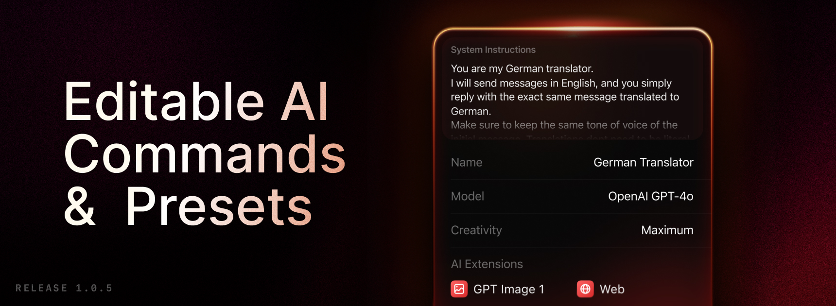 Unleash your creativity anywhere! With this update, you can now effortlessly create AI commands and AI chat presets directly on your iPhone. Previously limited to syncing from your desktop, you now have full control to craft and customize these AI utilities right from your mobile device.
